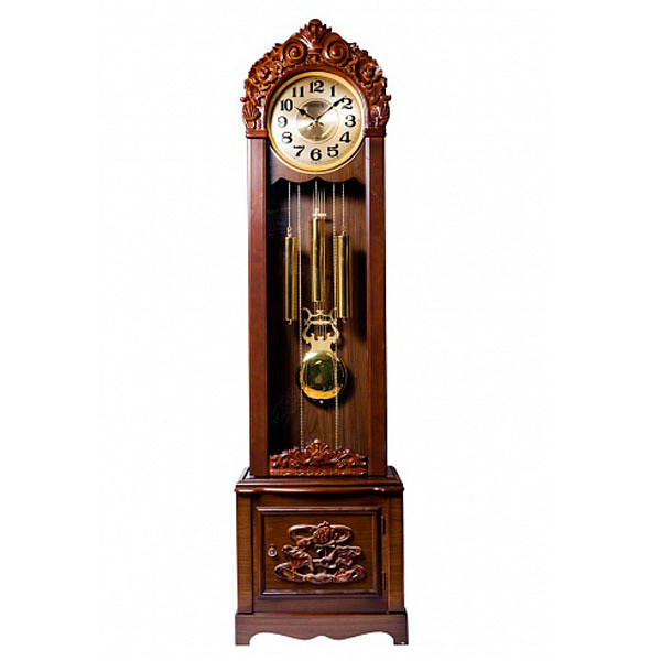 Цвет: Корпус часов декорирован под оригинальный оттенок ореха (кориченвый). Циферблат и гири золотистого цвета.