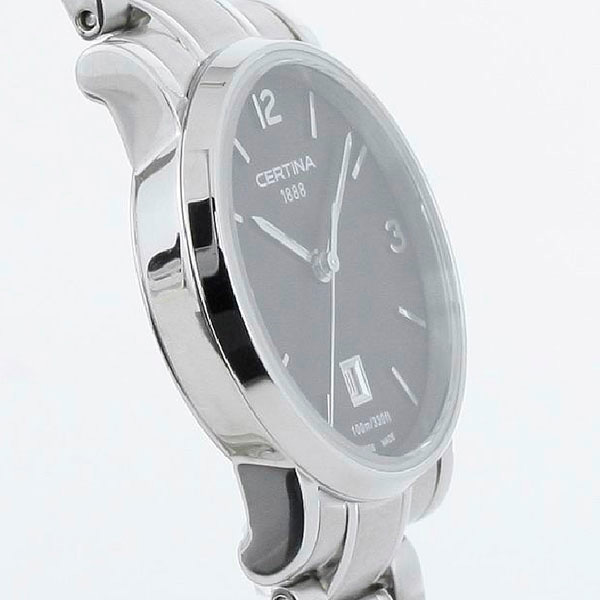Корпус: Корпус из полированной/матовой нержавеющей стали. Чёрный циферблат с серебристыми стрелками и рисками. Часовая и минутная стрелки с люминесцентным покрытием. Сапфировое стекло. Диаметр 27 мм. Водостойкость 100 м. Система DS.