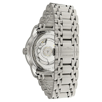 Корпус: Нержавеющая сталь марки 316L. Металлик циферблат. Серебристые стрелки покрыты люминесцентным составом SuperLuminova. Сапфировое стекло с антибликовым покрытием. Водонепроницаемость 30 метров. Диаметр 41 мм.