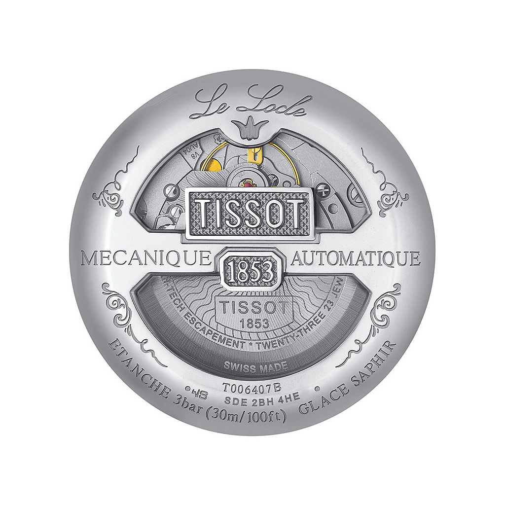 Корпус: Корпус из нержавеющей стали 316L, с частичным PVD покрытием цвета розового золота. Серебристый циферблат с логотипом Tissot, оригинальный орнамент на циферблате «парижские гвозди». Винтажные римские цифры и стрелки с позолотой. Сапфировое стекло, устойчивое к появлению царапин, обладающее высокой прозрачностью. Прозрачная задняя крышка с гравировкой. Диаметр корпуса составляет 39,3 мм. Водонепроницаемость: 30 м.