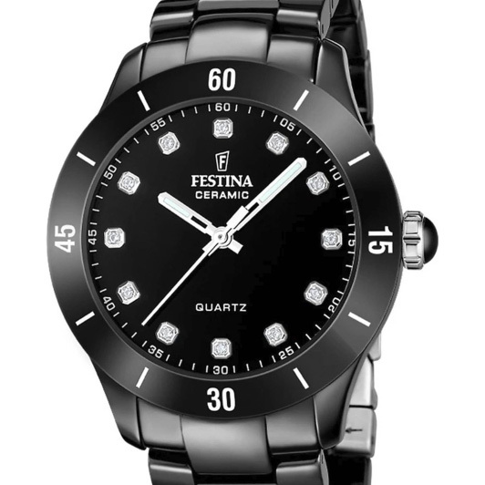 Корпус: Корпус выполнен из чёрной керамики, придающей часам изысканность и устойчивость к царапинам. Циферблат чёрного цвета оформлен серебристыми метками с эффектом мерцания, стрелки с люминесцентным покрытием, обеспечивающим хорошую читаемость в темноте. Циферблат защищён минеральным стеклом. Диаметр: 38 мм. Водонепроницаемость 50 м. позволяет использовать часы в повседневных условиях, защищая от дождя и брызг.
