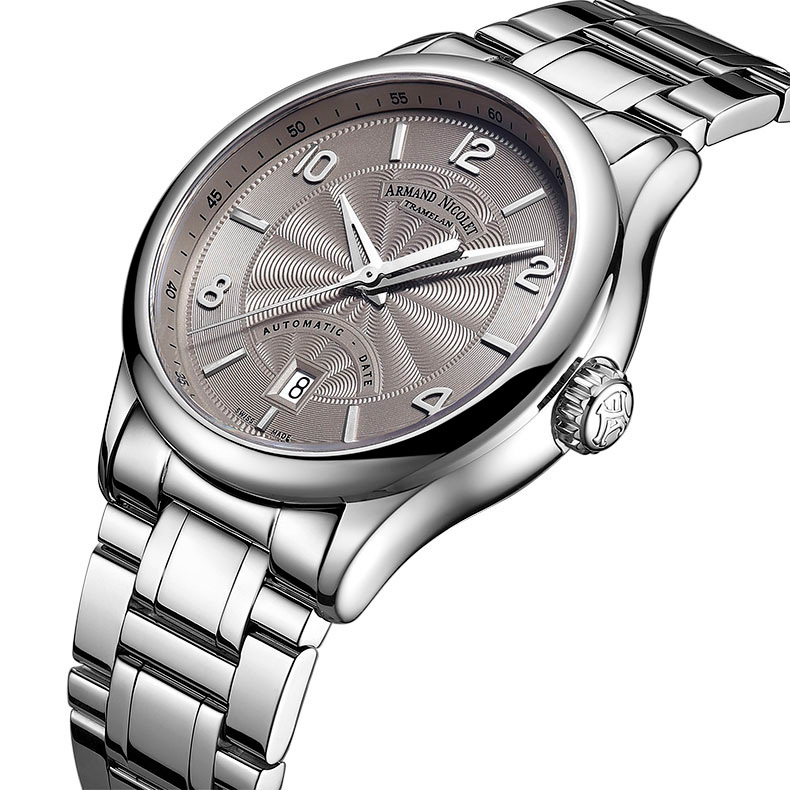 Корпус: Нержавеющая сталь. Серый циферблат, украшен декоративным узором - гильоше. Рифленая заводная головка. Сапфировое стекло с антибликовым покрытием, устойчивое к механическим повреждениям. Прозрачная задняя крышка. Диаметр 42 мм. Водозащита 100 м.