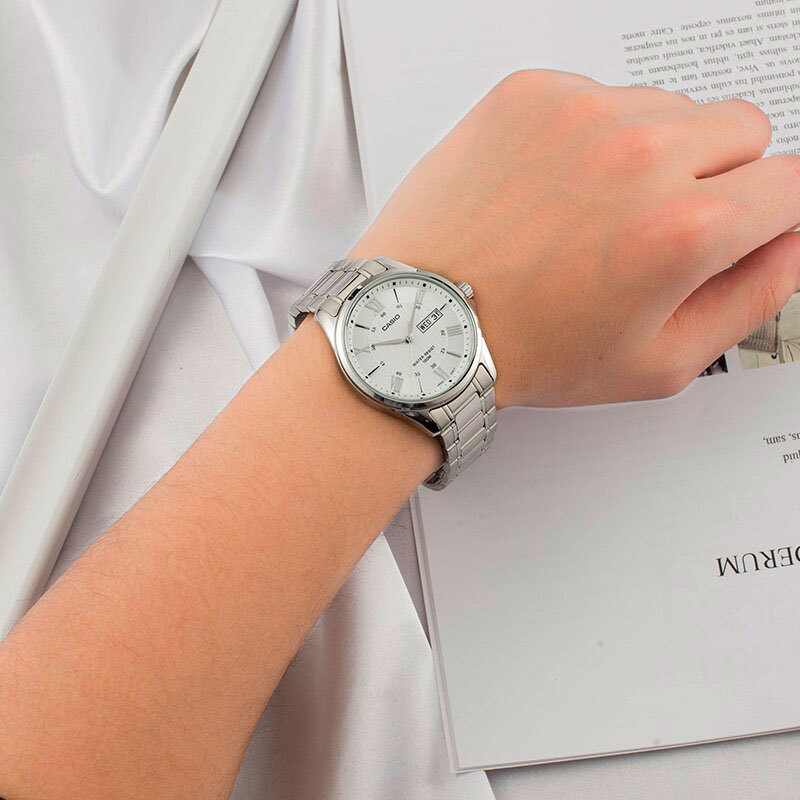 Функции: Индикация часов, минут и секунд при помощи центральных стрелок. На циферблате присутствует индикация дня недели и текущей даты.