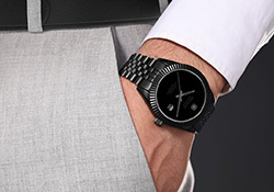 Корпус: Нержавеющая сталь 316L с розовым IP покрытием. Серый циферблат с золотистыми стрелками и часовыми индексами. Минеральное стекло повышенной прочности. Водозащита: 30 м. Диаметр: 36 мм.