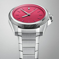 - Циферблат: Розовый, бриллиант багетной огранки на «12 часов»
