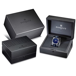 - Ремешок: Синий кожаный, телячья кожа с тиснением под аллигатора, быстрая смена, пряжка с логотипом Perrelet