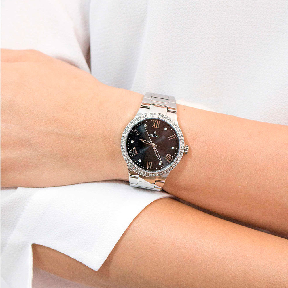 Ремешок: Надежный, прочный и элегантный браслет из нержавеющей стали. Застежка украшена фирменным логотипом Festina, на кнопочной фиксации.