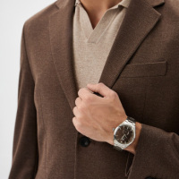 Корпус: Корпус часов выполнен из нержавеющей стали 316 L. Циферблат коричневого цвета выполнен по технологии Sunray (солнечные лучи) и защищен прочным миниральным стеклом с сапфировым напылением. Метки в виде штрихов. Рифленая заводная головка с защитой. Диаметр корпуса 46 мм. Водонепроницаемость 50 метров.