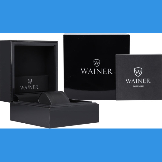 Корпус: Круглый корпус из нержавеющей стали 316L. Циферблат чёрного цвета, защищен устойчивым к царапинам сапфировым стеклом и украшен фирменным логотипом Wainer в положении 12 часов. Метки в виде рисок. Люминесцентные стрелки. Рифленая заводная головка с защитой. Диаметр корпуса 45 мм. Водонепроницаемость 100 метров.