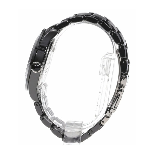 Корпус: Корпус выполнен из чёрной керамики, придающей часам изысканность и устойчивость к царапинам. Циферблат чёрного цвета оформлен серебристыми метками с эффектом мерцания, стрелки с люминесцентным покрытием, обеспечивающим хорошую читаемость в темноте. Циферблат защищён минеральным стеклом. Диаметр: 38 мм. Водонепроницаемость 50 м. позволяет использовать часы в повседневных условиях, защищая от дождя и брызг.