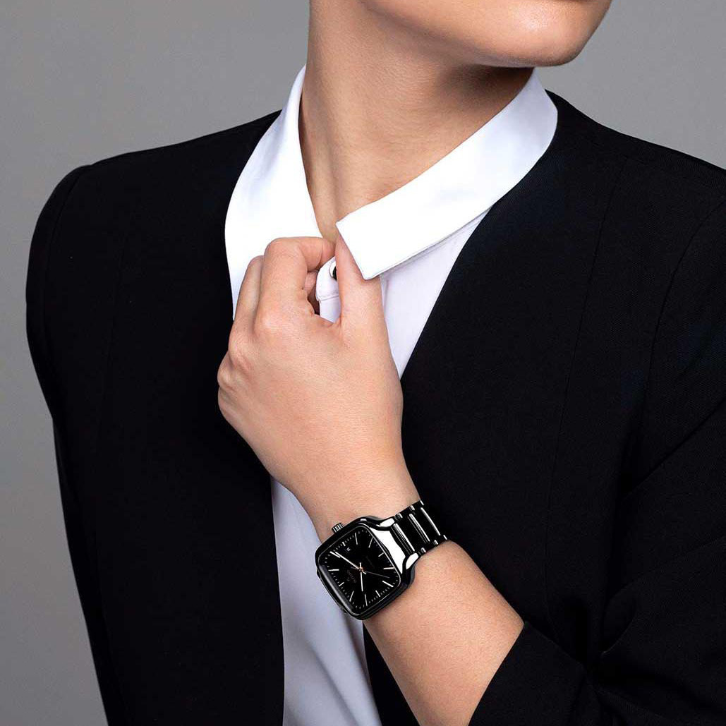 Ремешок: Браслет из высокотехнологичной керамики чёрного цвета, застежка бабочка - из титана.
