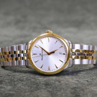 Корпус: Круглый корпус выполнен из нержавеющей стали 316Lс частичным PVD-покрытием желтого цвета, поверхность с матовой шлифовкой – сатинированием и полировкой до алмазного блеска. Серебристый циферблат с эффектом солнечных лучей (Sunray). Накладные часовые индексы и клиновидные стрелки в стиле Dauphine с PVD-покрытием. Сапфировое стекло с антибликовым покрытием устойчиво к царапинам сохраняет прозрачность на протяжении многих лет. Заводная головка украшена фирменным логотипом. Диаметр корпуса составляет: 39 мм., толщина - 9 мм. Класс водозащиты: 10 бар (100 метров), позволит плавать.