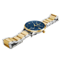 Корпус: Круглый корпус выполнен из нержавеющей стали, поверхности с матовой шлифовкой сатинированием и глянцевой полировкой, с частичным IP покрытием. Циферблат синего цвета с шлифовкой "солнечные лучи". Аппликация часовых индексов и стрелки с алмазной огранкой имеют полировку до зеркального блеска. Сапфировое стекло с антибликовым покрытием. Диаметр корпуса составляет 43 мм. Водостойкость 5 ATM.