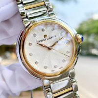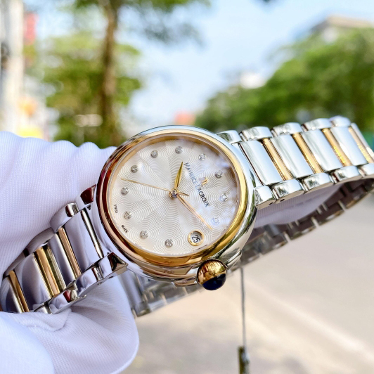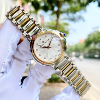Корпус: Круглый корпус выполнен из нержавеющей стали 316L, поверхность с глянцевой полировкой до зеркального блеска. Безель с PVD покрытием цвета жёлтого золота. Гильошированный циферблат. Аппликация часовых индексов и стрелки с алмазной огранкой имеют золотое покрытие и полировку до зеркального блеска. Часовые индексы украшены бриллиантами. Сапфировое стекло с антибликовым покрытием защищает циферблат от царапин и обеспечивает отличную читаемость при любом освещении. Диаметр корпуса составляет: 32 мм. Водостойкость: 3 ATM.