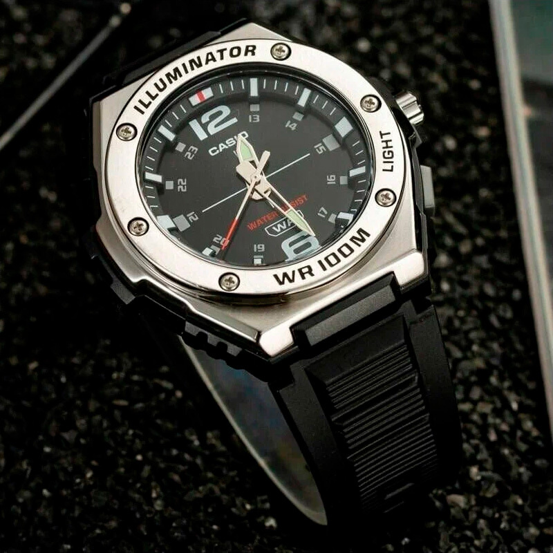 Корпус: Корпус выполнен из полимерного материала чёрного цвета, который является идеальным компаньоном каждого дня, прочный и лёгкий / нержавеющая сталь. Минеральное стекло. Метки в виде штрихов и двух арабских цифр. Заводная головка с защитой. Светодиодная подсветка, послесвечение. Размер корпуса (Д × Ш × В)50,6 × 49,6 × 13,5 мм. Водонепроницаемость (10 Бар).