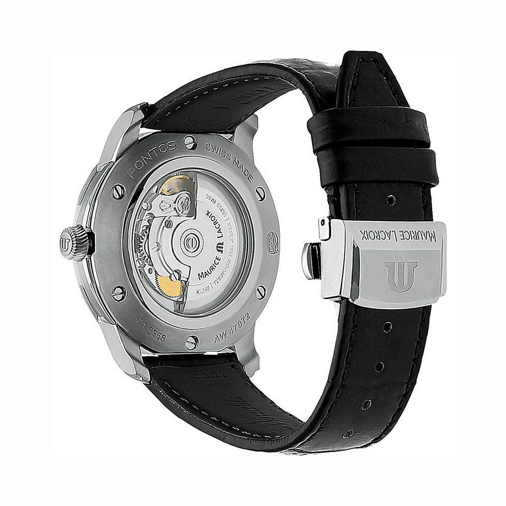 Ремешок: Черный ремешок из высококачественной кожи с тиснением "под аллигатора" и логотипом Maurice Lacroix «M». Застежка с тройным сложением в стиле “бабочка” раскрывается при нажатии боковых блокировочных кнопок.