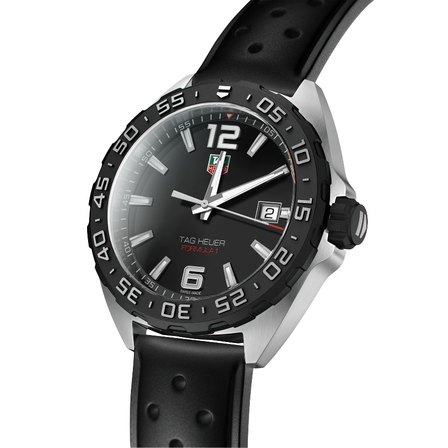 Ремешок: Каучуковый ремешок черного цвета с перфорированием, классическая застежка пряжка из нерж. стали украшена логотипом TAG Heuer.