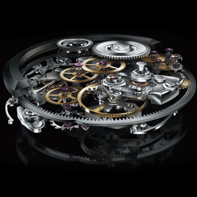 Этим первым калибром, как уже говорилось, стал механизм "CFB A1000". Его сектор автоподзавода создан в виде тонкого полукольца, которое скользит вдоль внешней окружности, не закрывая собой поверхность мостов, что позволяет декорировать её так же искусно, как и в механизмах с ручным заводом.