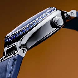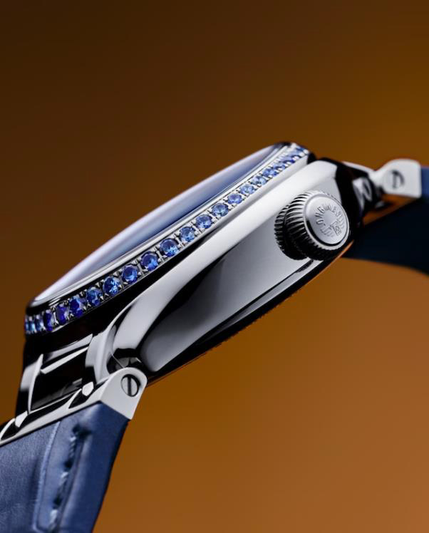 Голубой перламутровый циферблат украшен 14 бриллиантовыми индексами Top Wesselton, а автоматический механизм с кремниевой спиралью обеспечивает надёжность и точность. Фаза Луны, расположенная на «6 часах», добавляет модели поэтичности и глубины — это часы, которые выходят за рамки моды. Безель украшен 48 голубыми сапфирами.